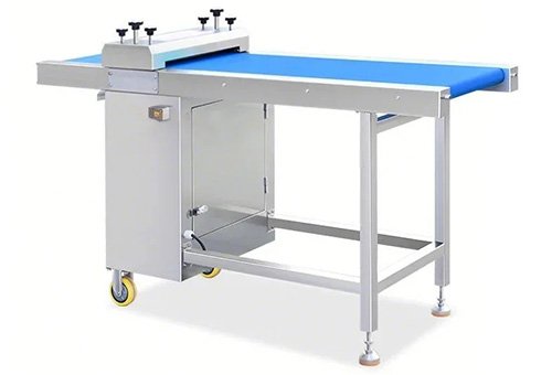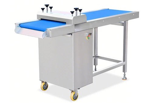 The conveyor adopts a wave type conveyor belt, which is smooth and easy to clean. The discharge does not stick to the meat, and it fits perfectly with the cutting edge, with a long service life.